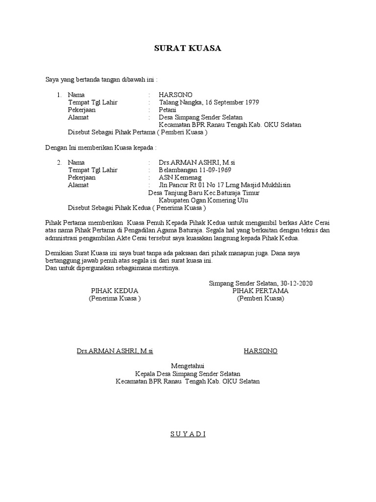 Contoh Surat Kuasa Untuk Mengambil Akta Cerai Kumpulan Contoh Surat Dan Soal Terlengkap